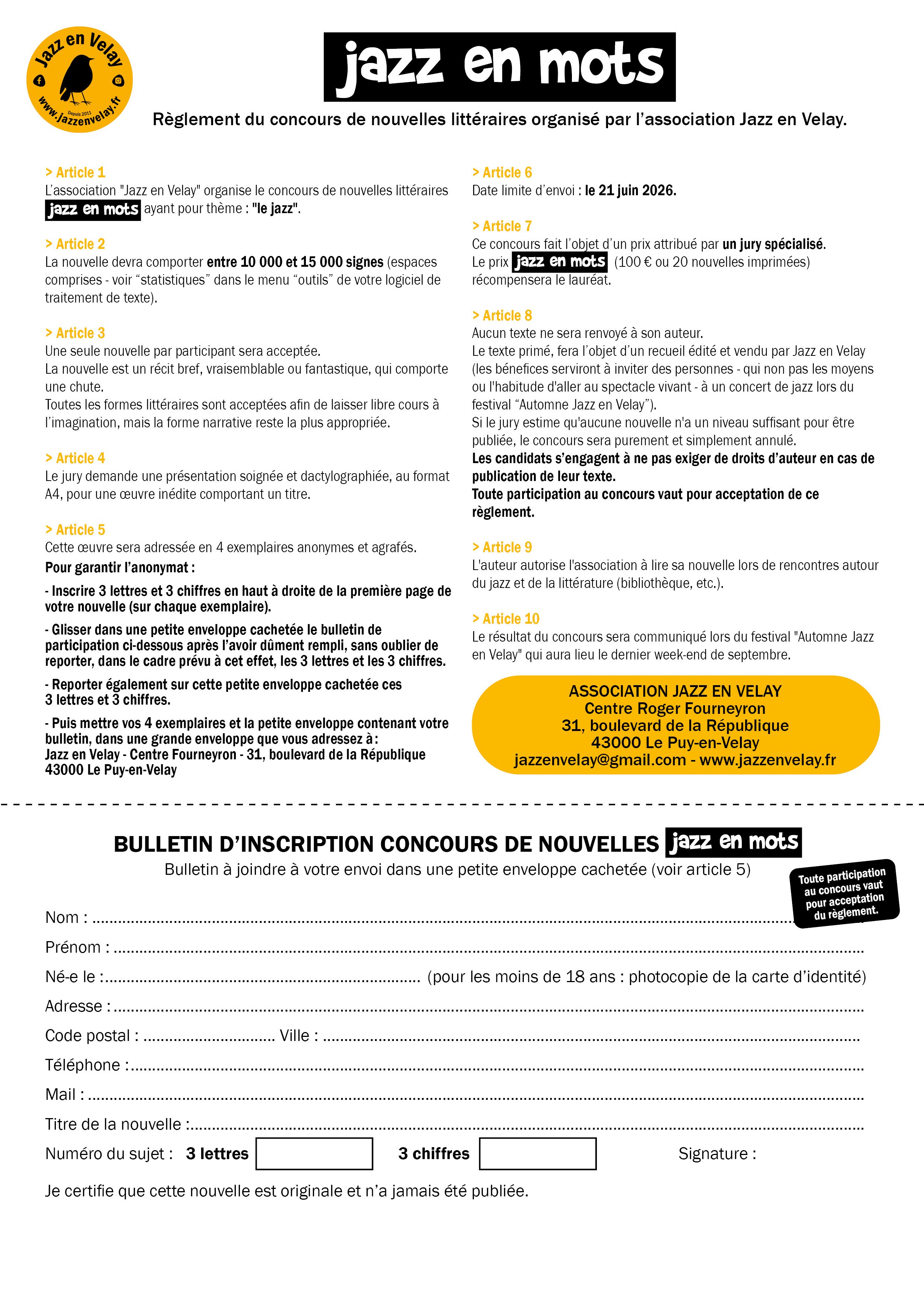 Depuis 2013, l’association Jazz en Velay organise un concours de nouvelles littéraires unique en France : LE PRIX JAZZ EN MOTS.
