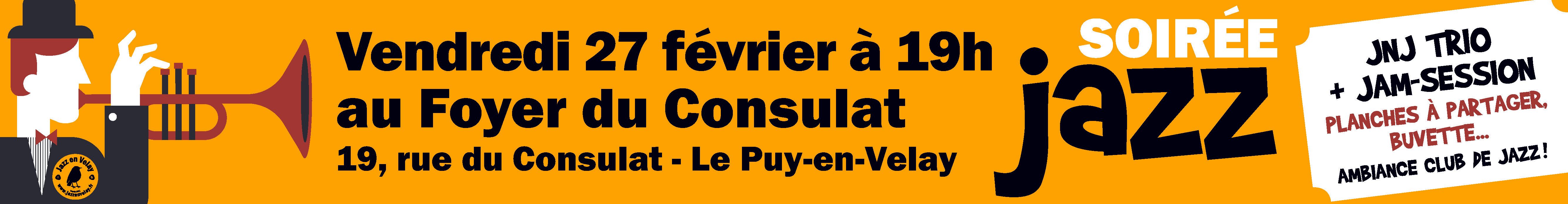 Une nouvelle SOIRÉE JAZZ organisée par Jazz en Velay se déroulera au Foyer du Consulat, vendredi 27 février dès 19h.